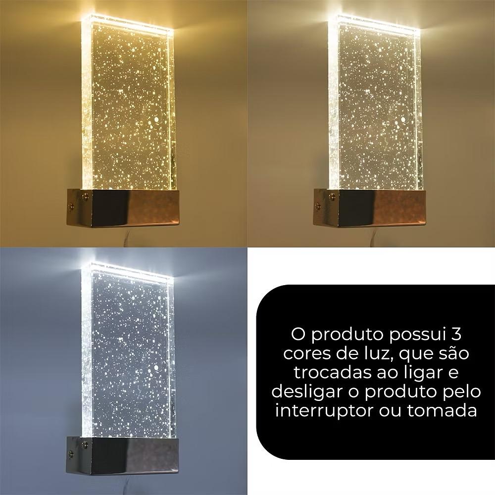 ARANDELA CRISTAL RETANGULAR DOURADO 3 COR DE LUZ