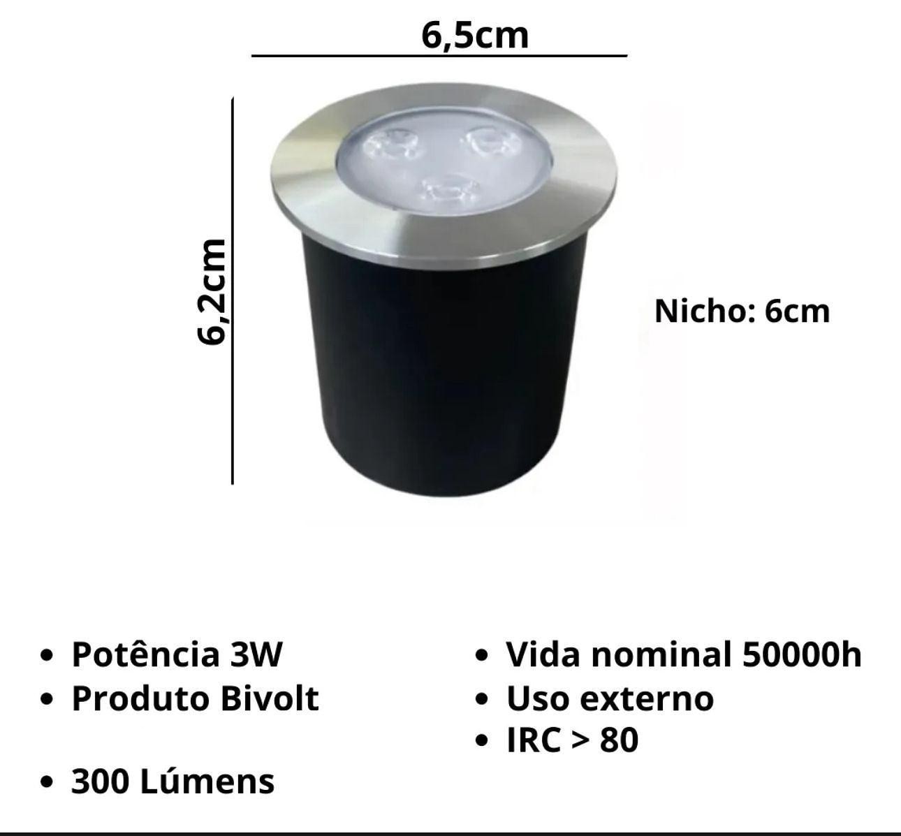 BALIZADOR MINI EMBUTIR 3W BRANCO FRIO PROVA D'ÁGUA