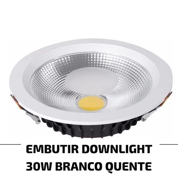 DOWNLIGHT LED COB 30W EMBUTIR BRANCO QUENTE