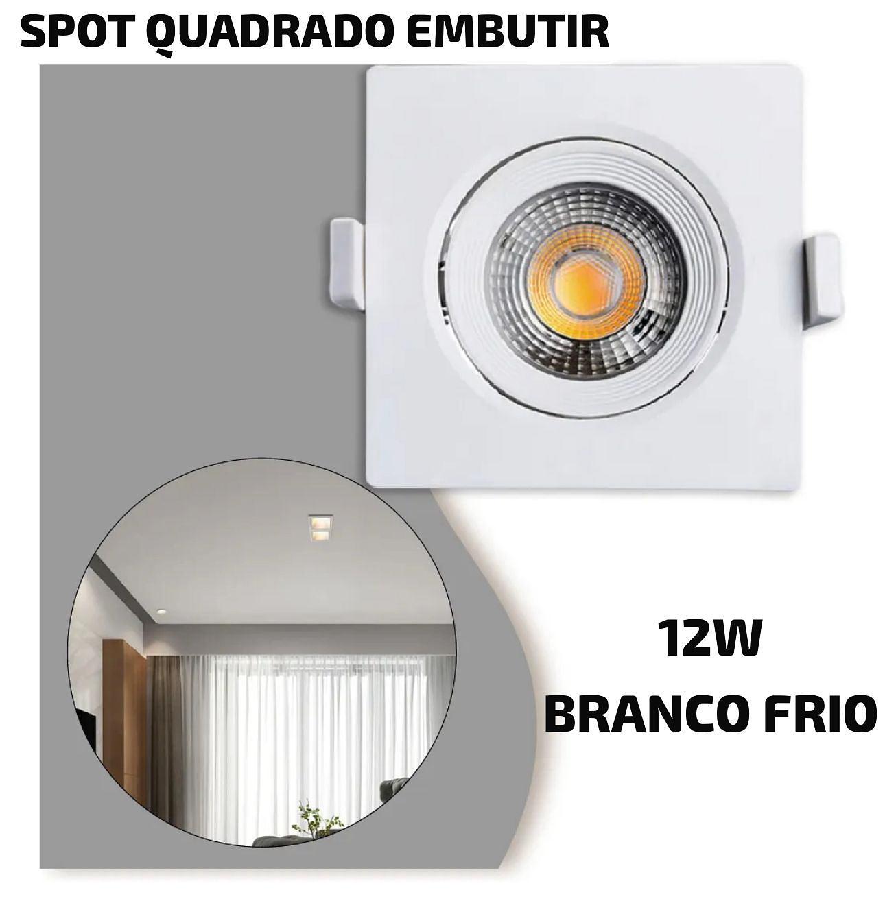 LED SPOT QUADRADO 12W BRANCO FRIO BIVOLT