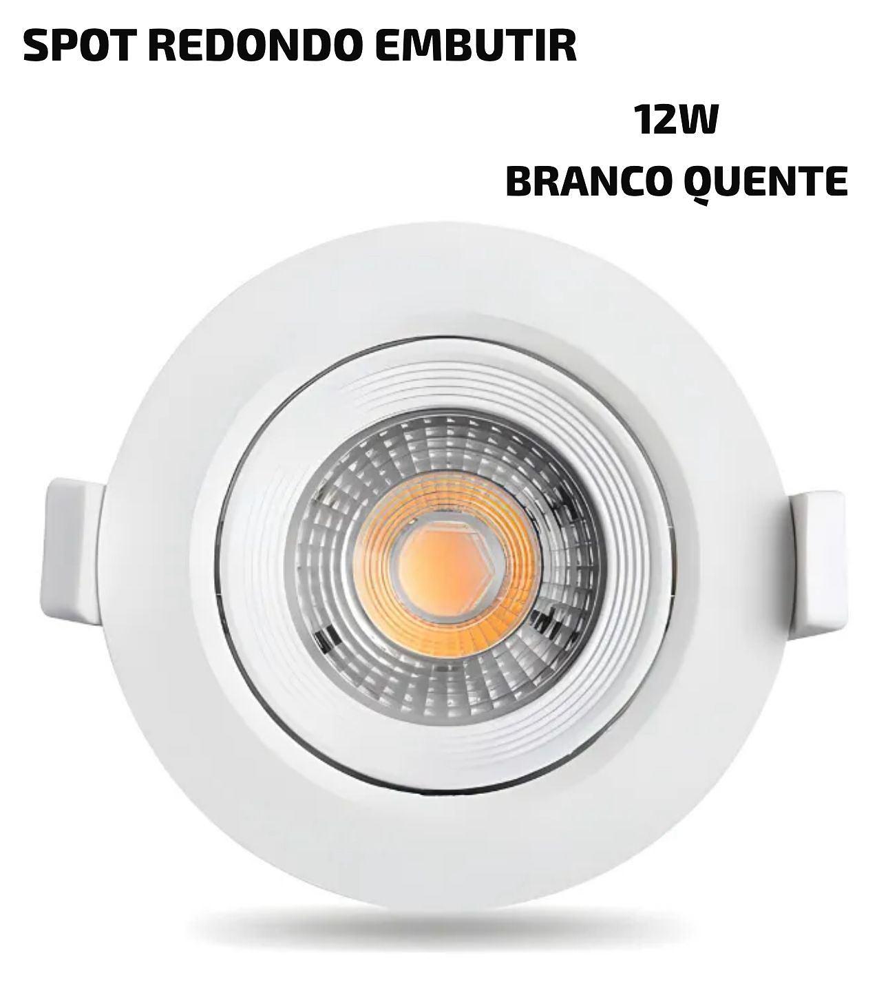 LED SPOT REDONDO 12W BRANCO QUENTE BIVOLT
