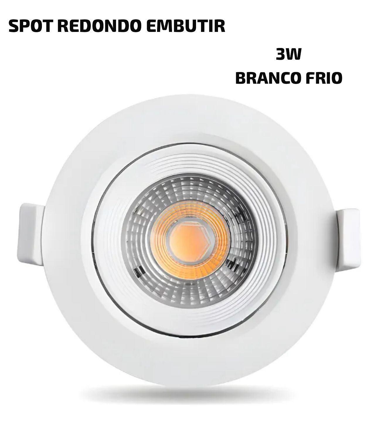 LED SPOT REDONDO 3W BRANCO FRIO BIVOLT