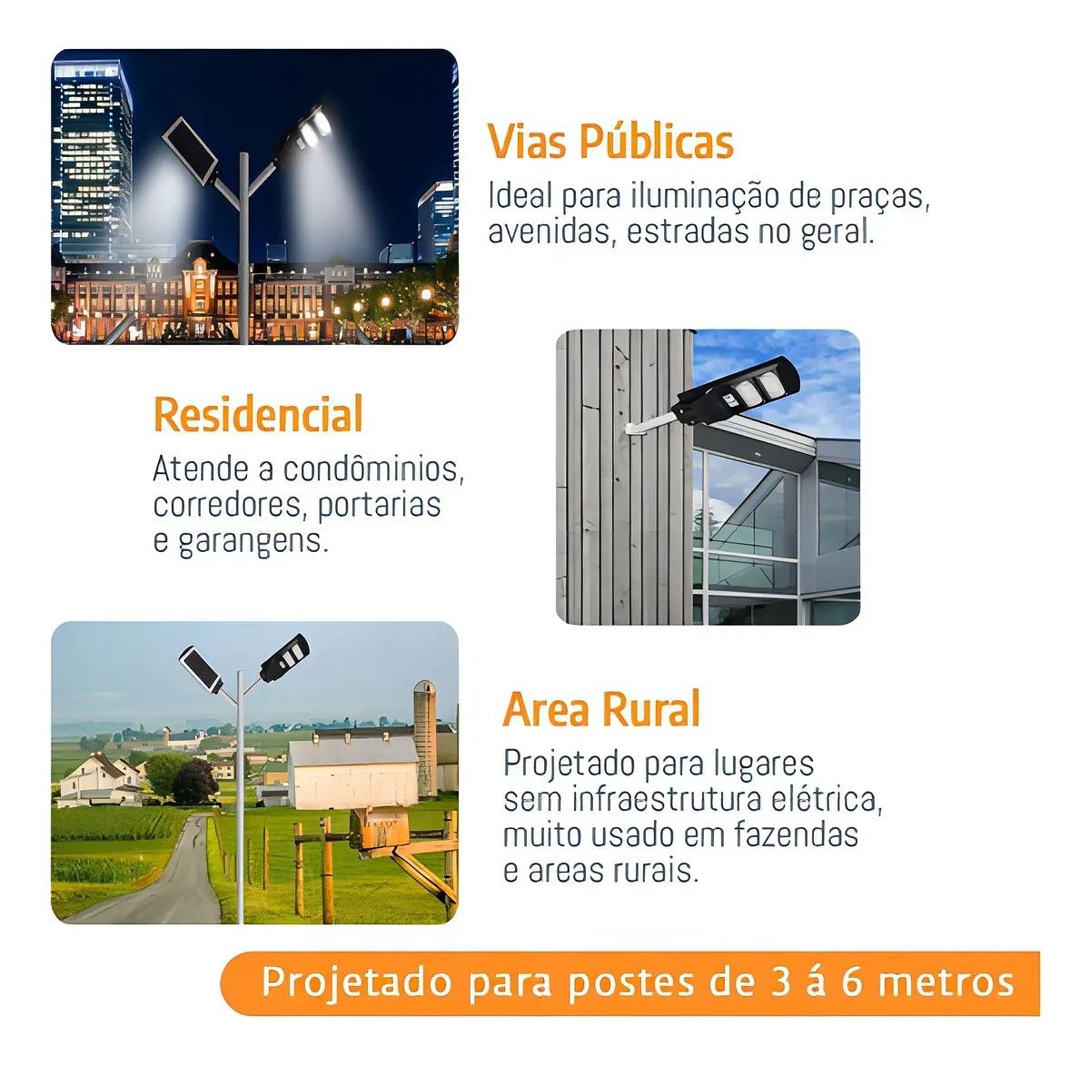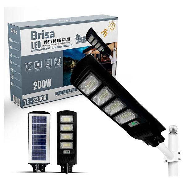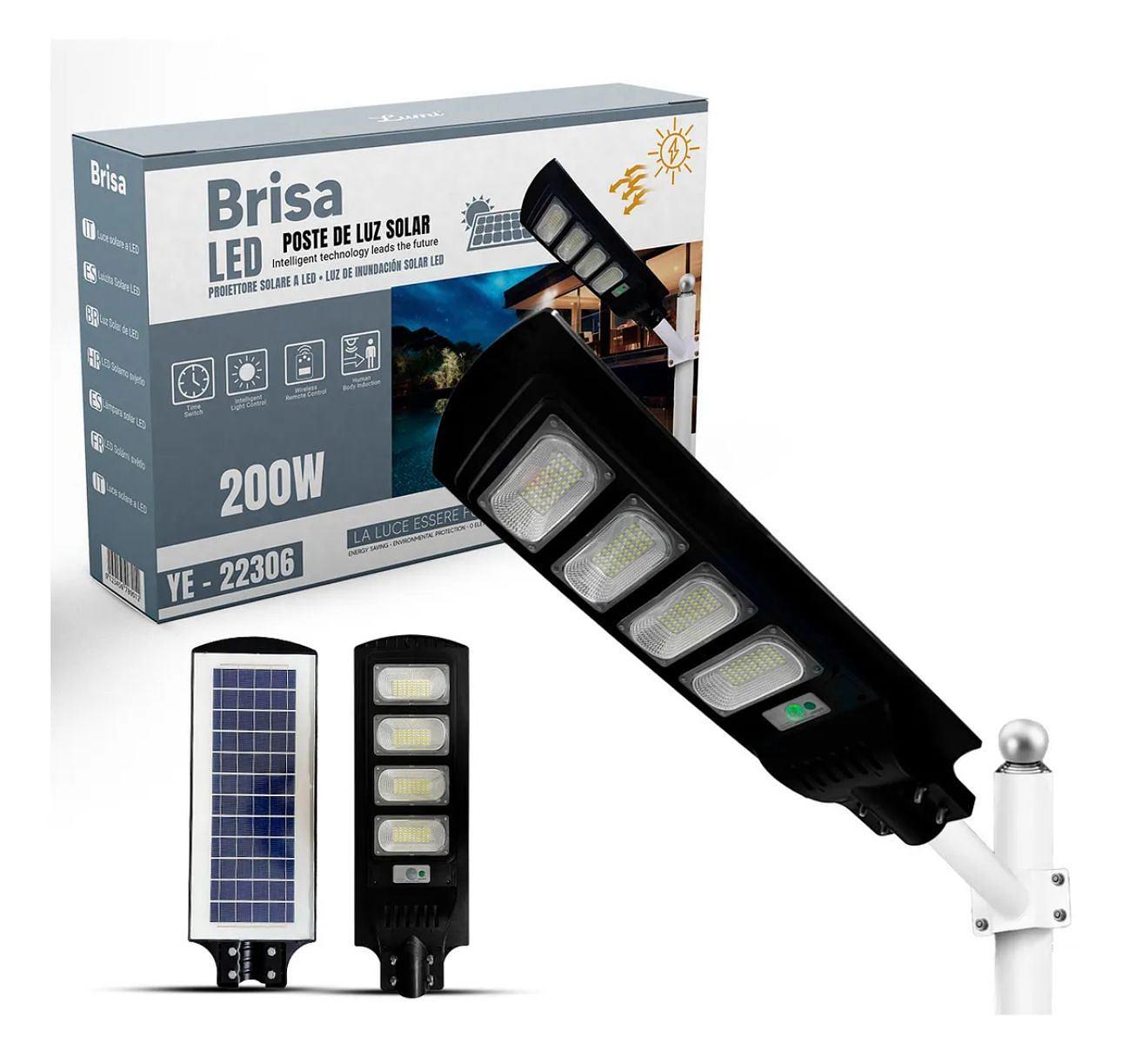 LUMINARIA PUBLICA SOLAR 200W COM SENSOR CONTROLE PROVA D'AGUA