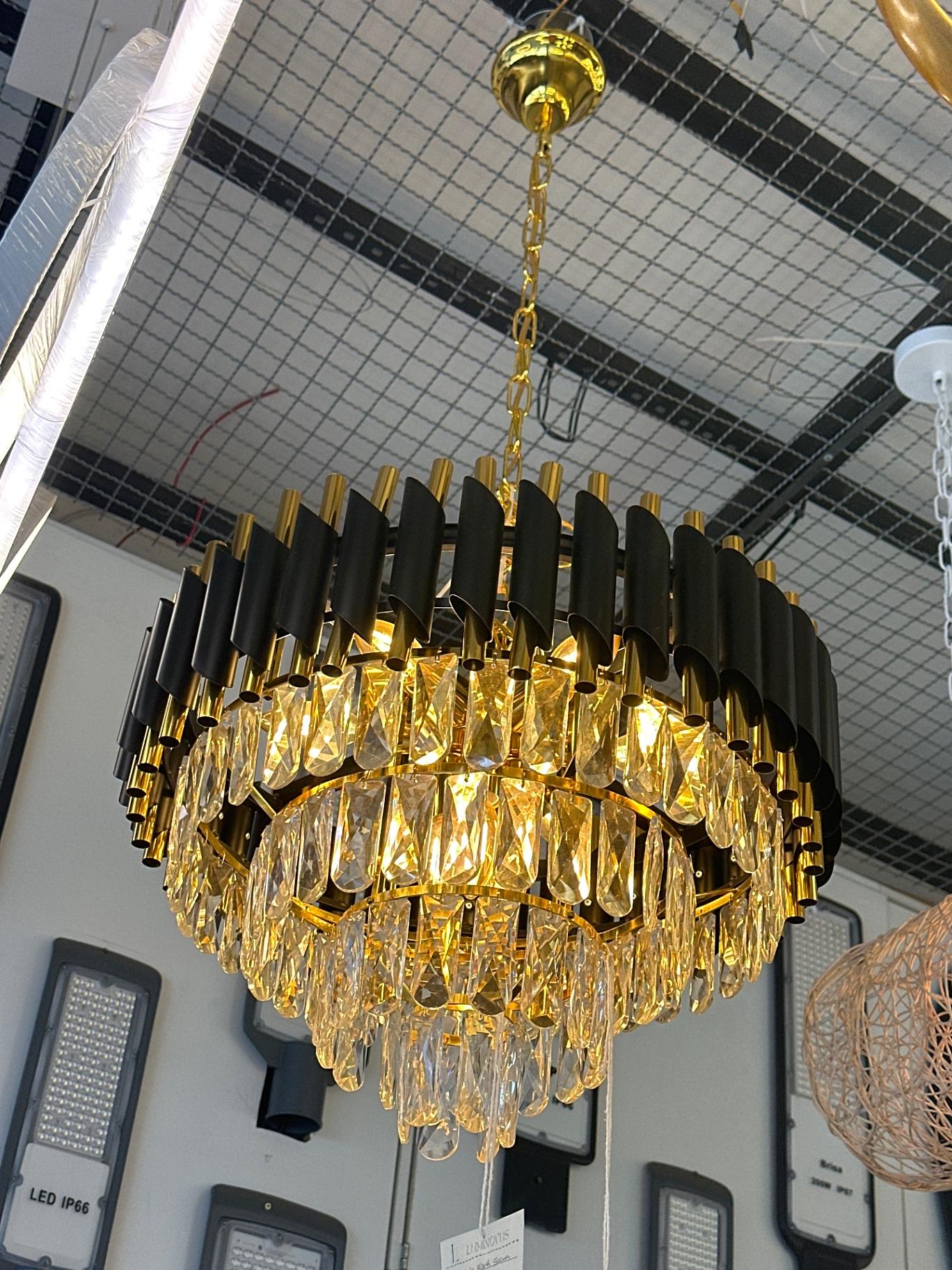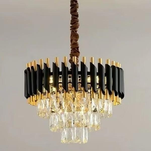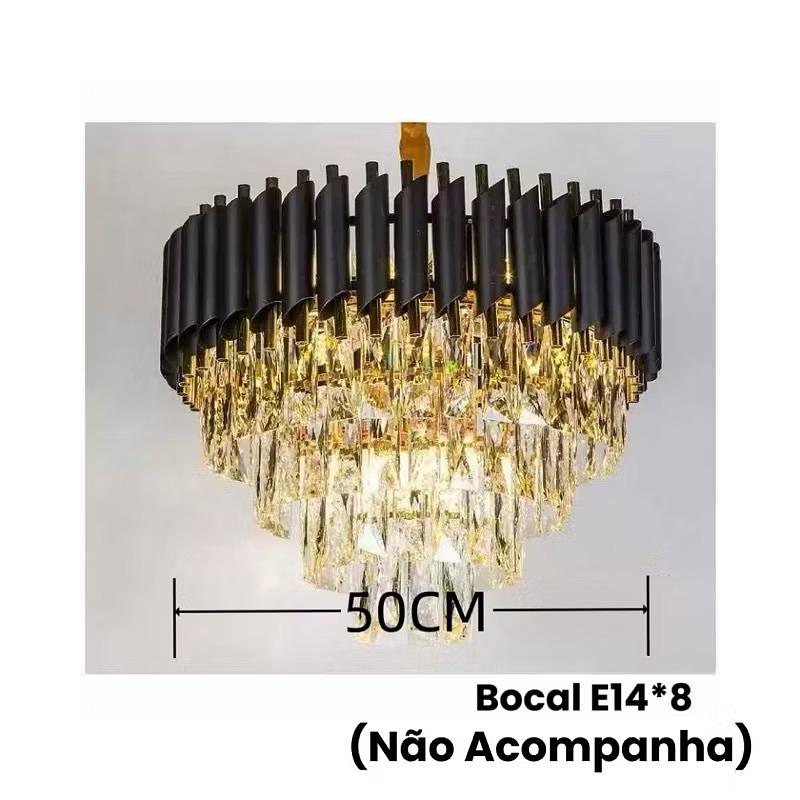 LUSTRE PENDENTE REDONDO LUXO DETALHAMENTO PRETO 50CM E14*8 CD240956/500BK