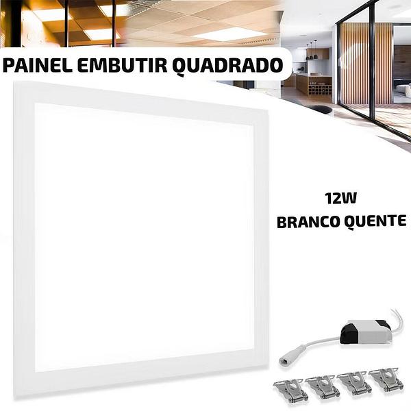 PAINEL EMBUTIR QUADRADO 12W BRANCO QUENTE
