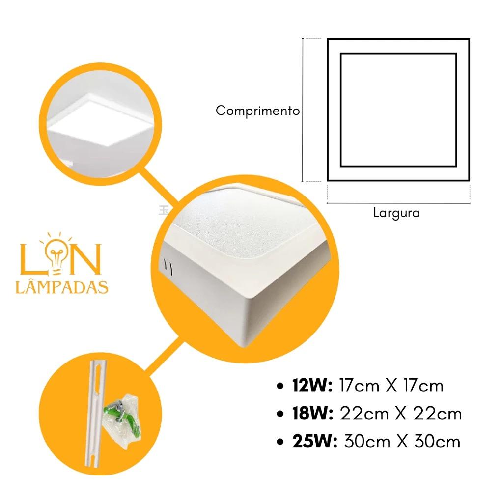 PAINEL SOBREPOR QUADRADO 18W BRANCO QUENTE