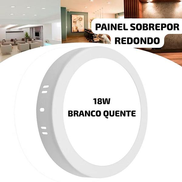 PAINEL SOBREPOR REDONDO 18W BRANCO QUENTE