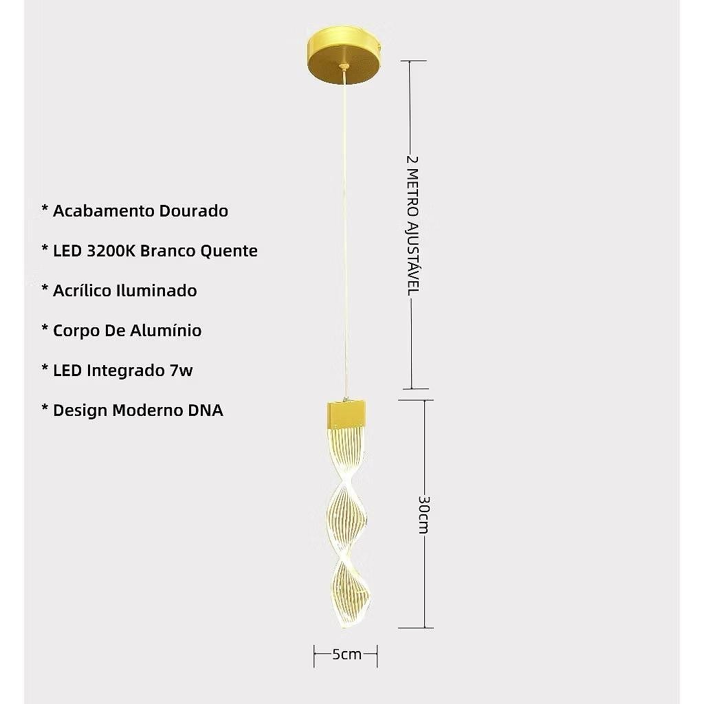 PENDENTE ACRILICA DNA ESPIRAL 3200K LUSTRE CABECEIRA MODERNO CD20240337D