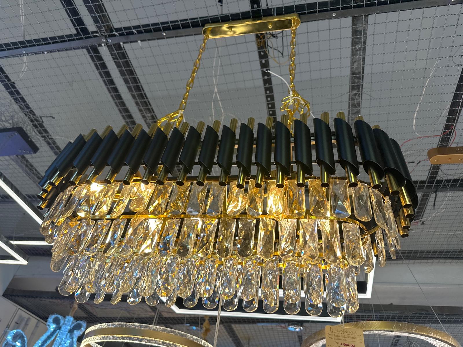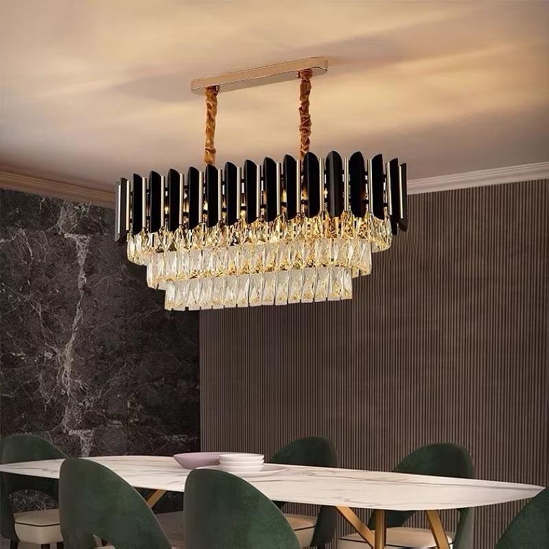 PENDENTE LUXO PRETO COM CRISTAL K9 75CM RETANGULAR 240957/750BK