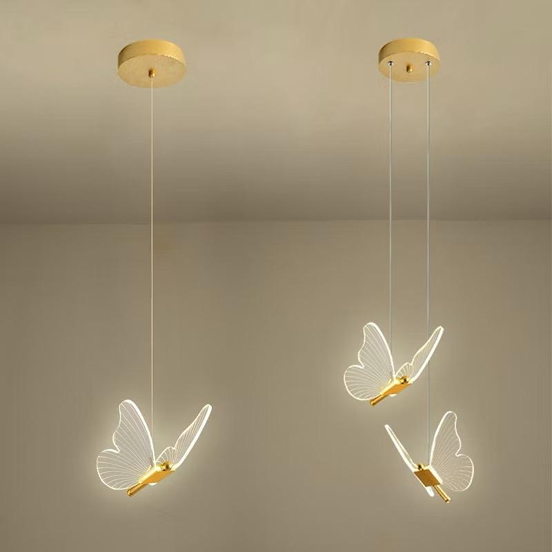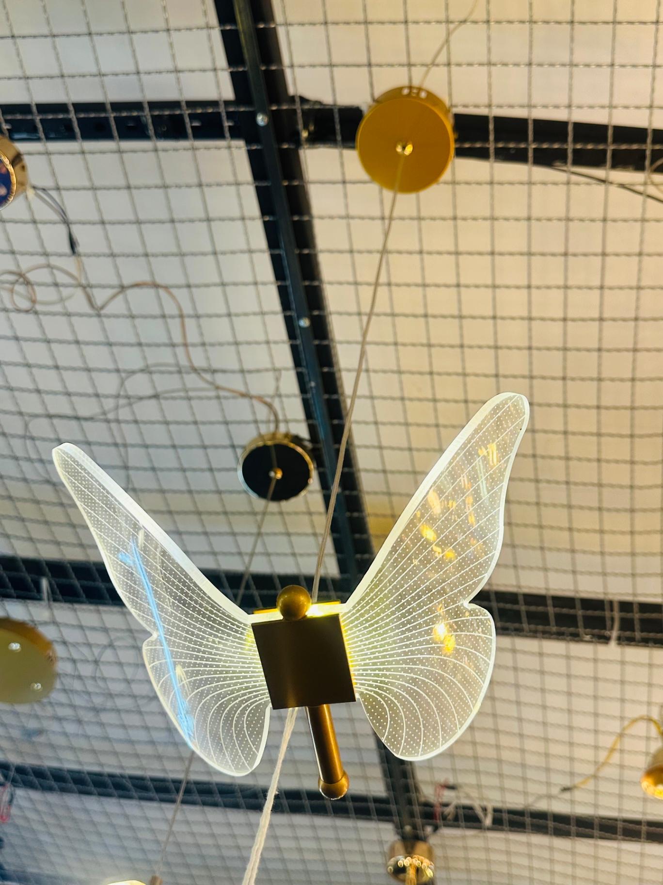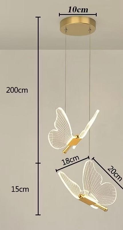 PENDENTE BORBOLETA REALISTA DOURADO LED 3500K BRANCO QUENTE