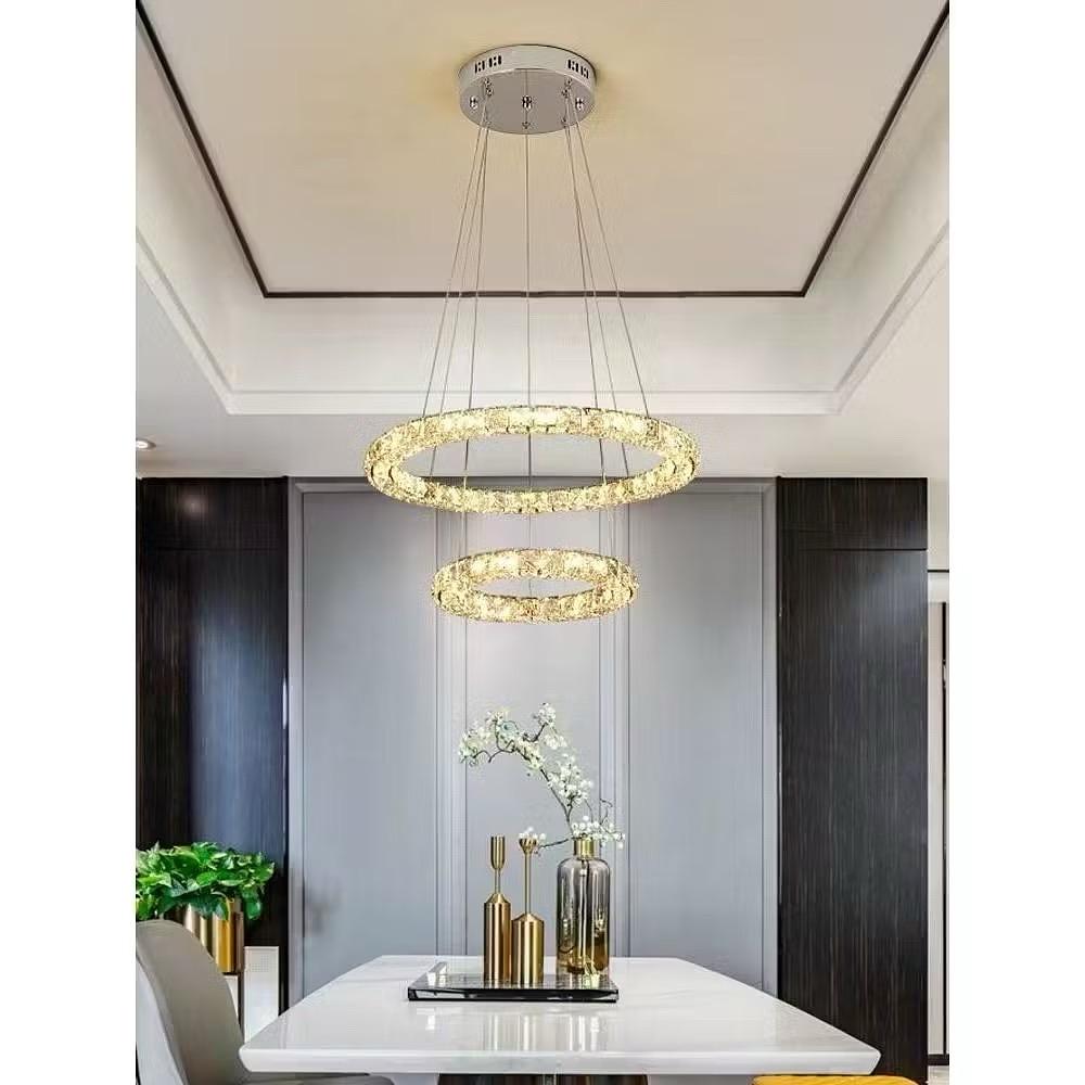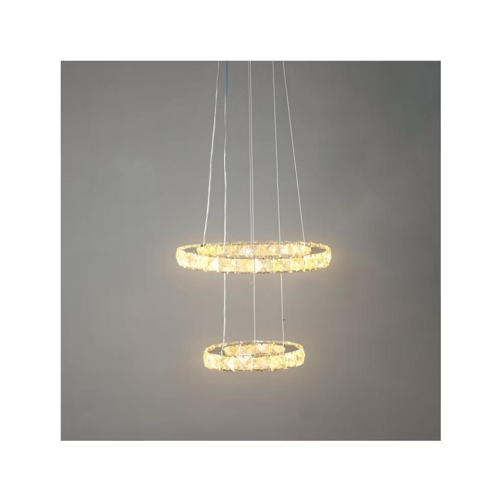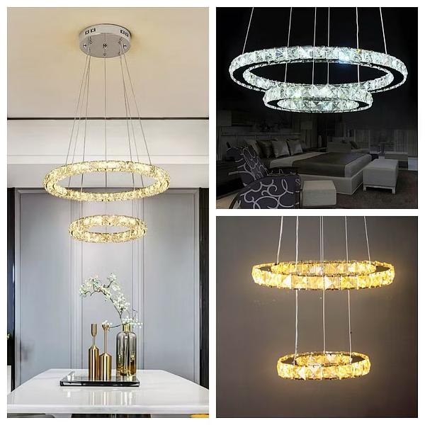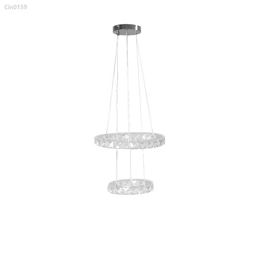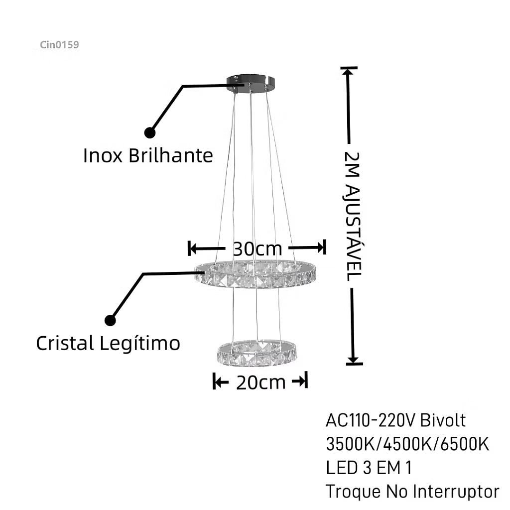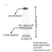 PENDENTE CRISTAL 2 NÍVEL REDONDO 30+20CM 3 COR DE LED C0158