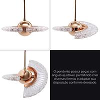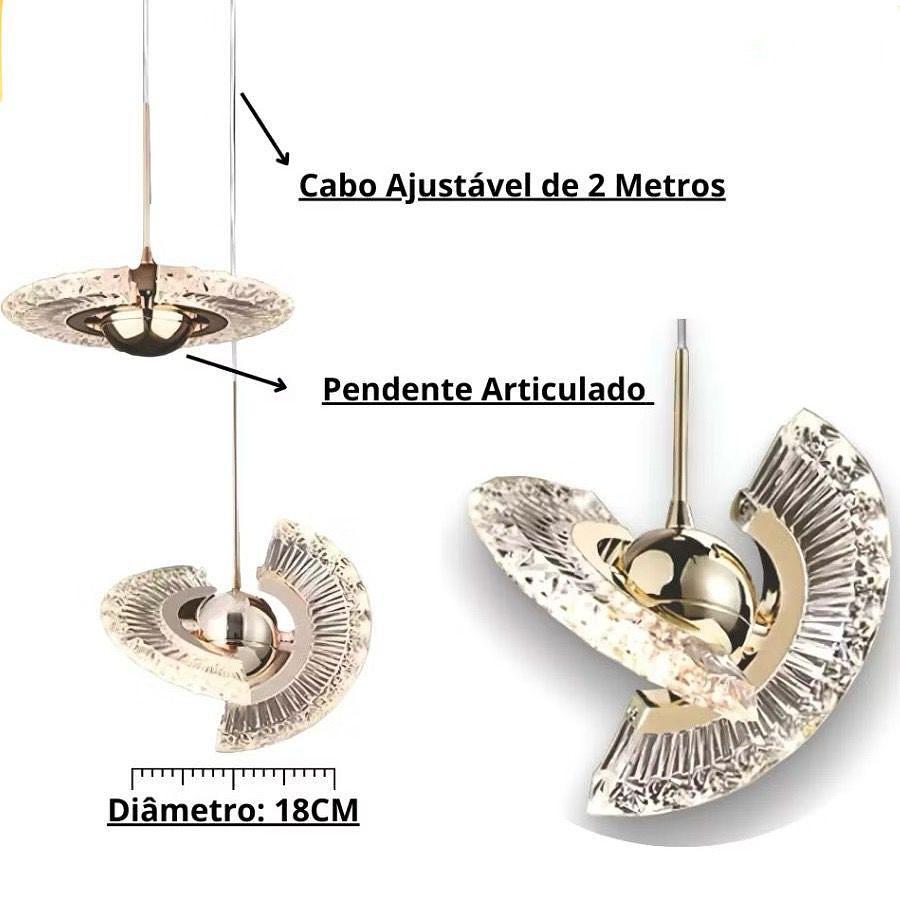 PENDENTE DISCO 360º DOURADO 3 CORES DE LUZ BIVOLT