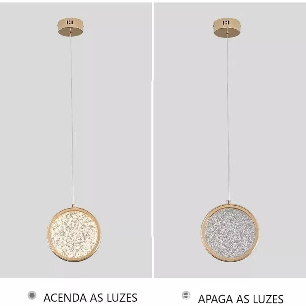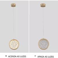 PENDENTE DISCO MODERNO REDONDO DOURADO 3 COR DE LED