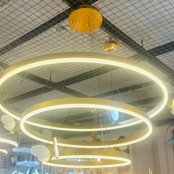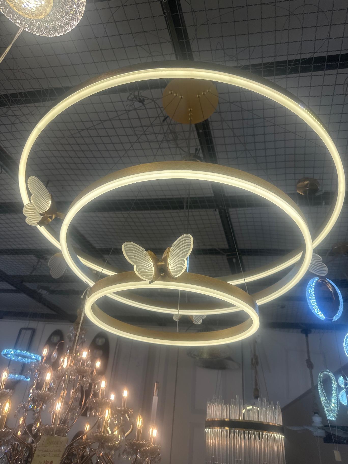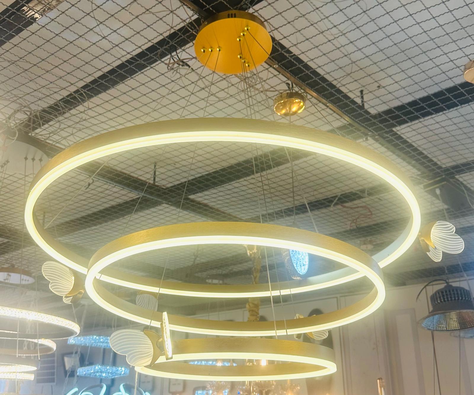 PENDENTE DOURADO REDONDO 3 NÍVEIS DESIGN COM BORBOLETA 80+60+40CM LED 3200K 2021162D