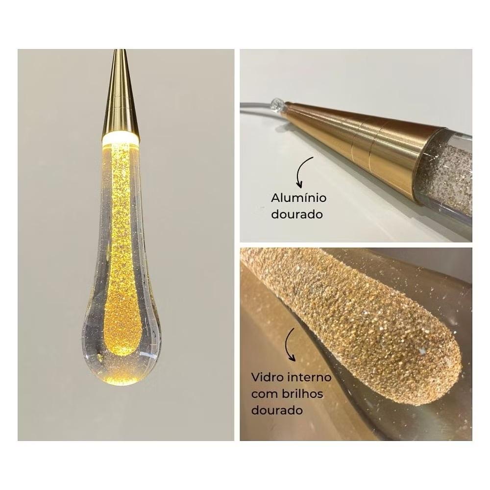 PENDENTE GOTA VIDRO DOURADO 3 COR DE LED GOTA01