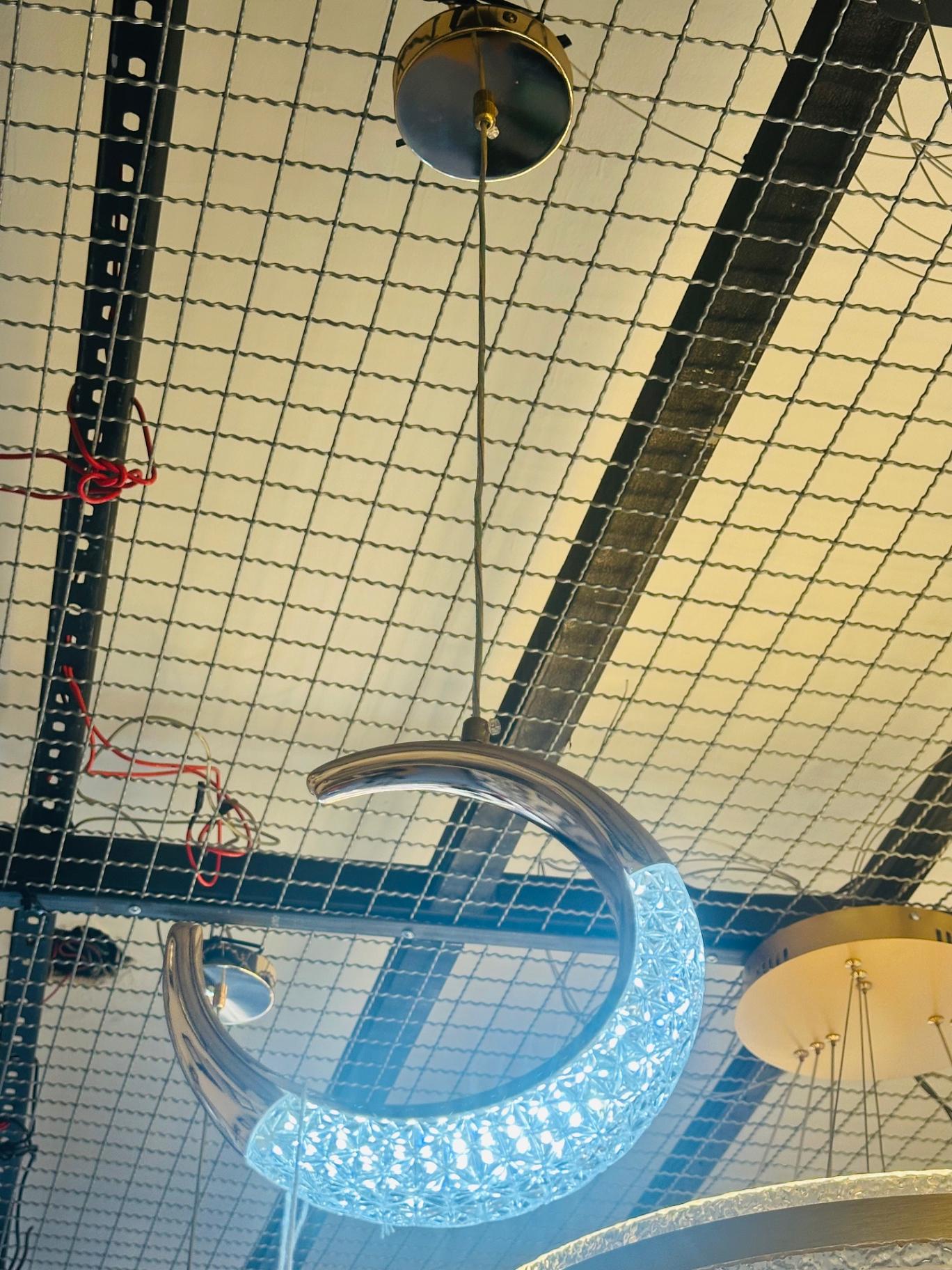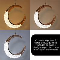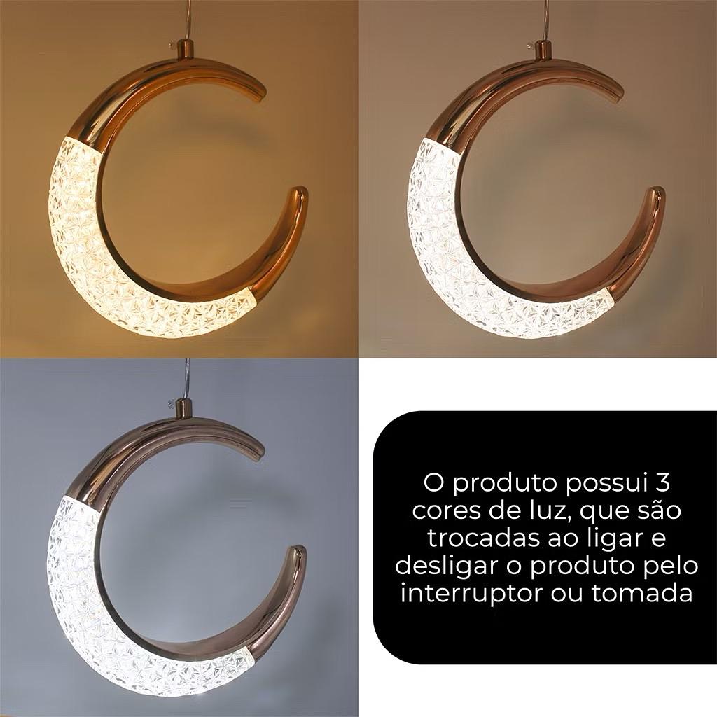 PENDENTE LUA ACRÍLICO DOURADO LED 3COR BIVOLT