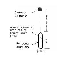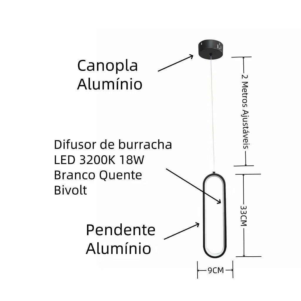 PENDENTE MINIMALISTA OVAL PRETO SLIM 3000K BIVOLT PD1150