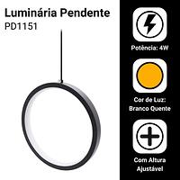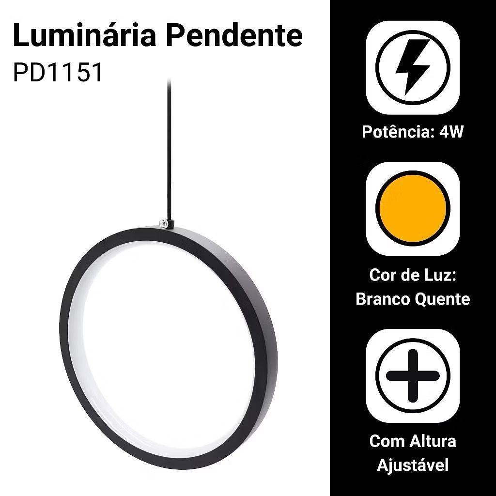 PENDENTE MINIMALISTA REDONDO PRETO 3000K BIVOLT YE PD1151