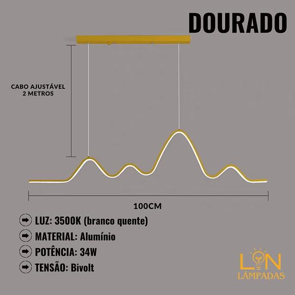 PENDENTE ONDULADO DOURADO 3500K 34W 1M DE COMPRIMENTO CD20230763P