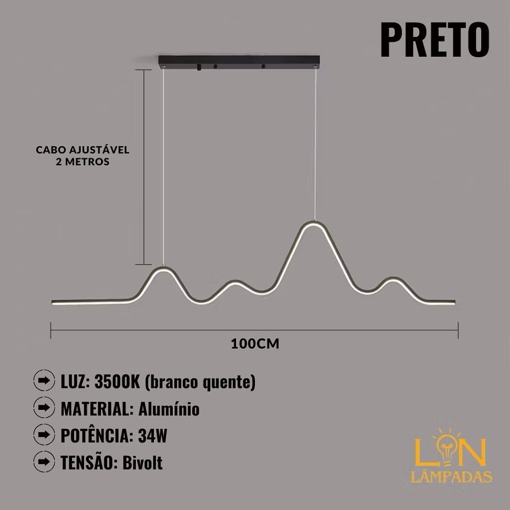 PENDENTE ONDULADO PRETO 3500K 1M DE COMPRIMENTO CD20230763P