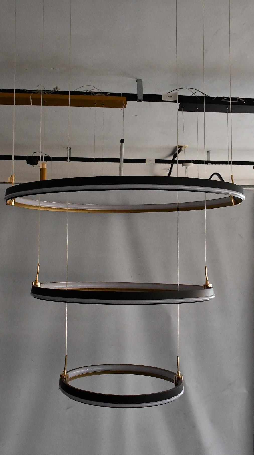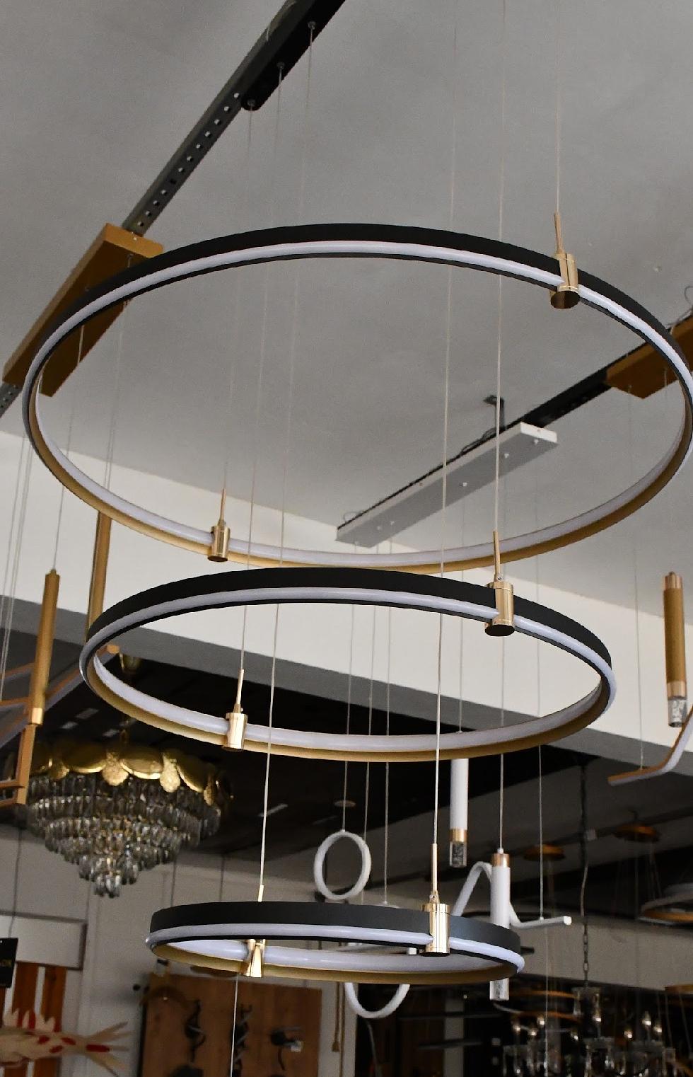 PENDENTE PRETO 3 NÍVEL 80+60+40 REDONDO 3200K 180W 7117/406080P