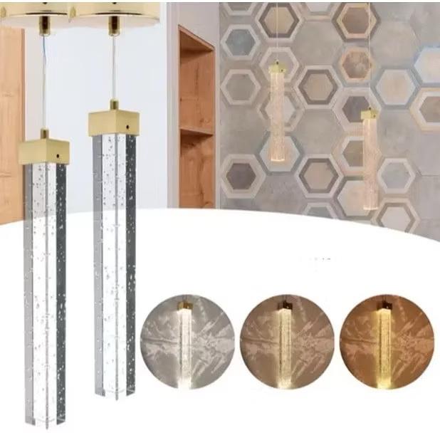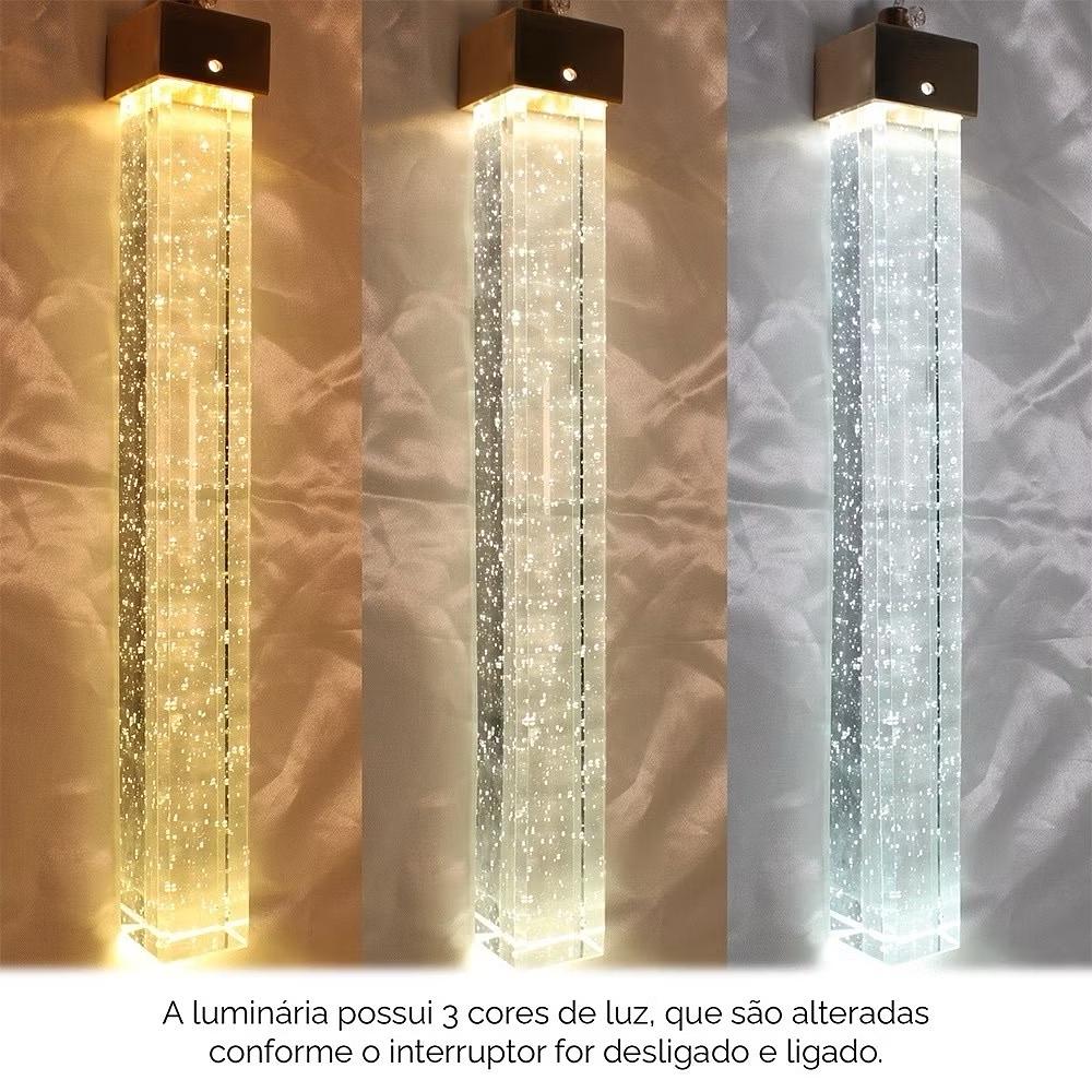 PENDENTE RETANGULAR COMPRIMIDO DOURADO 3 COR DE LED