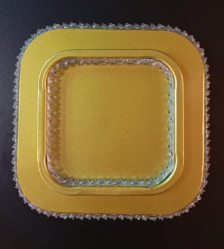 PLAFON QUADRADO DOURADO 25CM 33W DESIGN RECUADO LED 3200K