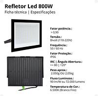 REFLETOR 800W 6000K BRANCO FRIO IP66 BIVOLT