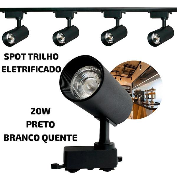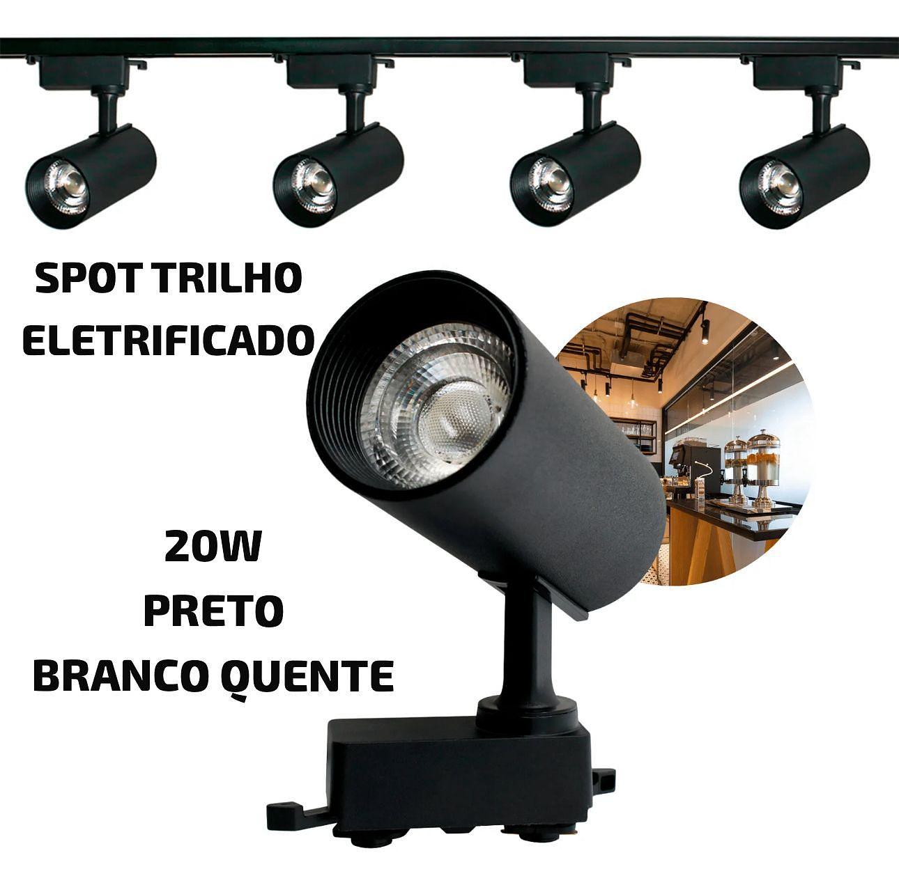 SPOT TRILHO ELETRIFICADO 20W PRETO 3000K