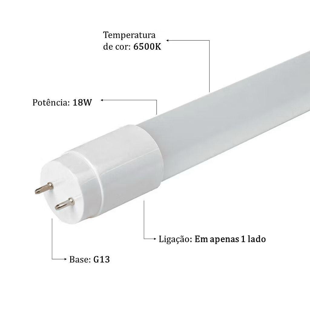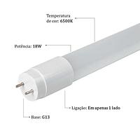 T8 TUBULAR 1.2M 18W 6500K VIDRO BIVOLT